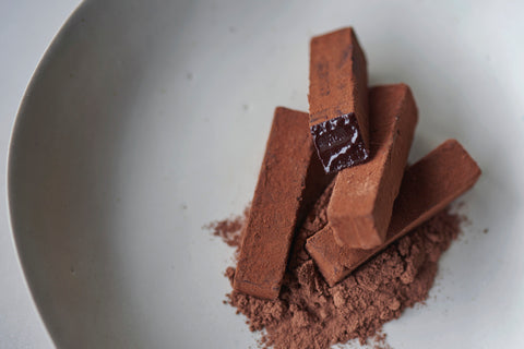 お酒を使用せず、カカオやコーヒー、焦がしバター、ほうじ茶を組み合わせ、大人も子どもも楽しめるように仕上げました。上に載せたダックワーズは、サクッとした食感とアーモンドの旨味が、全体のおいしさを引き立てます。小麦粉を使わない製法で仕上げた、しっとりと滑らかで、口の中に入れるとムースのように溶けていく淡い口溶けをご堪能ください。