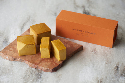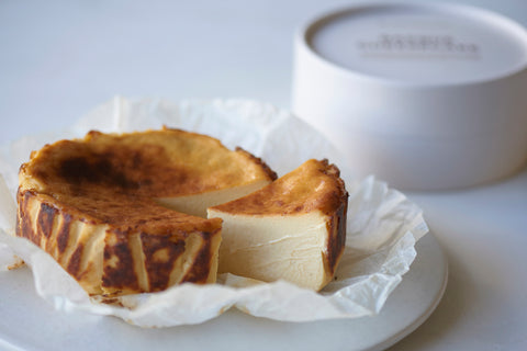 Mr. CHEESECAKEがつくる、バスクチーズケーキ。焦がしバター、バニラ、黒糖など旨味が特長の素材を組み合わせることで、高温で焼き上げる際に生まれる香ばしい香りがケーキ全体から感じられます。そこへクリームチーズ、ヨーグルト、練乳を加え、ミルキーな味わいを足し、より滑らかな口溶けに仕上げるためにヨーグルトパウダーを加えました。いくつもの素材を組み合わせた重層的な味わい、そして外側の濃密な食感と内側のとろけるような食感のコントラストをお楽しみください。本商品は温かみを感じる色合いにMr. CHEESECAKEのロゴを施したシンプルかつ高級感あるボックスにお包みします。