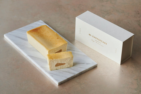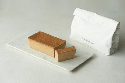Mr. CHEESECAKEがつくる、バスクチーズケーキ。焦がしバター、バニラ、黒糖など旨味が特長の素材を組み合わせることで、高温で焼き上げる際に生まれる香ばしい香りがケーキ全体から感じられます。そこへクリームチーズ、ヨーグルト、練乳を加え、ミルキーな味わいを足し、より滑らかな口溶けに仕上げるためにヨーグルトパウダーを加えました。いくつもの素材を組み合わせた重層的な味わい、そして外側の濃密な食感と内側のとろけるような食感のコントラストをお楽しみください。本商品は温かみを感じる色合いにMr. CHEESECAKEのロゴを施したシンプルかつ高級感あるボックスにお包みします。
